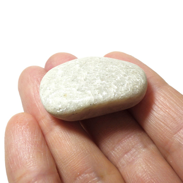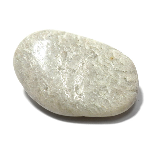 ブラジル産のホワイトアベンチュリン、タンブルです。クロム雲母によるグリーンのアベンチュリンが一般的ですが、白雲母を内包している石がホワイトアベンチュリンと呼ばれています。アベンチュリンは雲母鉱物が含まれるためキラキラと自然な輝きを持っています。輝きがなければ、この石はスノークォーツになります。
