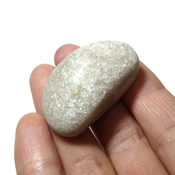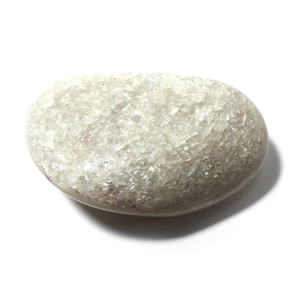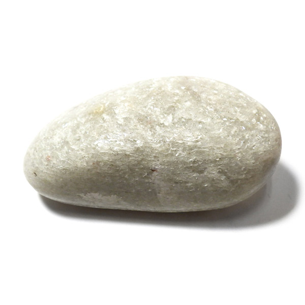 ブラジル産のホワイトアベンチュリン、タンブルです。クロム雲母によるグリーンのアベンチュリンが一般的ですが、白雲母を内包している石がホワイトアベンチュリンと呼ばれています。アベンチュリンは雲母鉱物が含まれるためキラキラと自然な輝きを持っています。輝きがなければ、この石はスノークォーツになります。