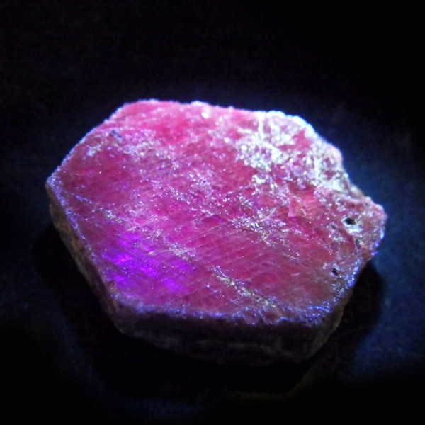 マダガスカル産サファイア、原石です。 サファイアといえば、深く美しいブルーが宝飾品として世界中で古くから愛されている石です。サファイアの中でも赤いものだけルビーと呼ばれます。こちらはサファイアですがルビーのような蛍光性がある珍しいものです(写真の波長は365nm)。質の良いサファイアは通常宝石に加工されますが、透明感のないものはタンブルやビーズ、あるいは光学ガラスや金属の研磨剤などに加工されます。ダイヤモンドに次ぐ硬さの鉱物であるサファイアの原石、コレクションにいかがでしょうか。