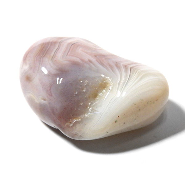 ボツワナ共和国産のピンクボツワナアゲート、タンブルです。アフリカのボツワナ共和国で産出するアゲートをボツワナアゲートと呼びます。 産出するアゲートの色はアイボリー・ベージュ・ブラウン・オレンジ・ピンクなど多色です。その中でもピンクのアゲートはファンが多いのですが、流通は大変少ないです。模様と優しい色味がなんとも可愛らしいタンブルです。