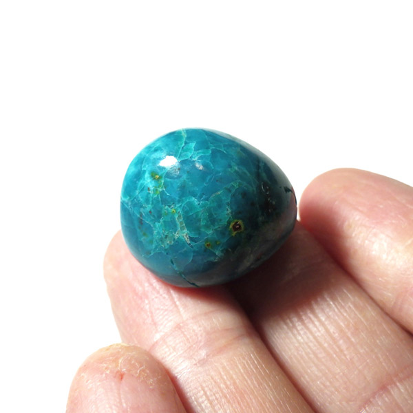 クリソコラは、何事に対してもしっかりと地に足を着けた実りあるものになるような生活ができるよう、サポートしてくれる石とされています。 仕事や恋愛、幸せな家庭生活や安産のお守りとしても人気です。 また、生活リズムを正しく整えてくれる作用もあり、心身のバランスを整えてストレスを吸収し、情緒を安定させてくれるといわれています。 体からマイナスエネルギーを抜いてくれる石でもあるので、健康のお守りとしてもオススメです。