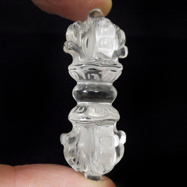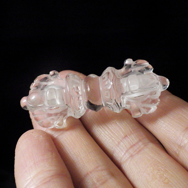 水晶でできた五鈷杵です。 小さいですが精巧な彫刻でとてもご利益がありそうなアイテムです。