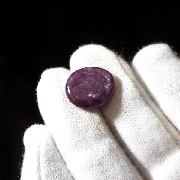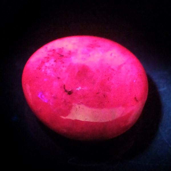 インド産ルビーのタンブルです。ルビーは三大色石としてエメラルド、サファイア、ルビーと誰もが名前を知っていますね。赤系の石、特にルビーはとても貴重な天然石です。365nmの波長のUVライトを照射することでルビーレッドが鮮やかに蛍光します。