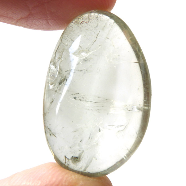 ブラジル・バイーア州産のプラシオライト、タンブルです。発音の関係でプラシオライト又はプラジオライトと表記されます。プラシオライトはアメジストを加熱処理することでグリーンに変化するのでグリーンアメジストとも呼ばれております。通常アメジストは加熱処理を加えると黄色に変化するのですが、ごく稀にグリーンに変化するものをプラシオライト(グリーンアメジスト)と呼んでいます。抜群の透明度にほのかなグリーンが優しく入っています。