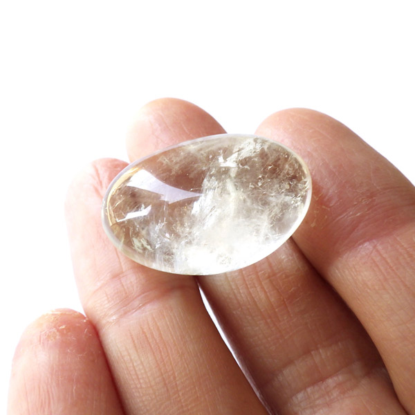 ブラジル・バイーア州産のプラシオライト、タンブルです。発音の関係でプラシオライト又はプラジオライトと表記されます。プラシオライトはアメジストを加熱処理することでグリーンに変化するのでグリーンアメジストとも呼ばれております。通常アメジストは加熱処理を加えると黄色に変化するのですが、ごく稀にグリーンに変化するものをプラシオライト(グリーンアメジスト)と呼んでいます。抜群の透明度にほのかなグリーンが優しく入っています。