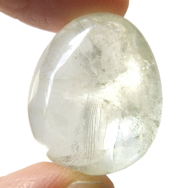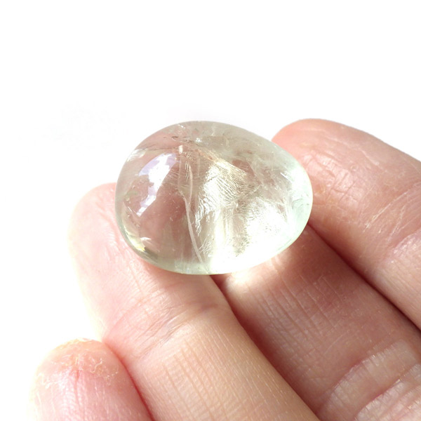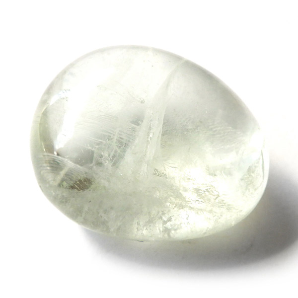 ブラジル・バイーア州産のプラシオライト、タンブルです。発音の関係でプラシオライト又はプラジオライトと表記されます。プラシオライトはアメジストを加熱処理することでグリーンに変化するのでグリーンアメジストとも呼ばれております。通常アメジストは加熱処理を加えると黄色に変化するのですが、ごく稀にグリーンに変化するものをプラシオライト(グリーンアメジスト)と呼んでいます。抜群の透明度にほのかなグリーンが優しく入っています。