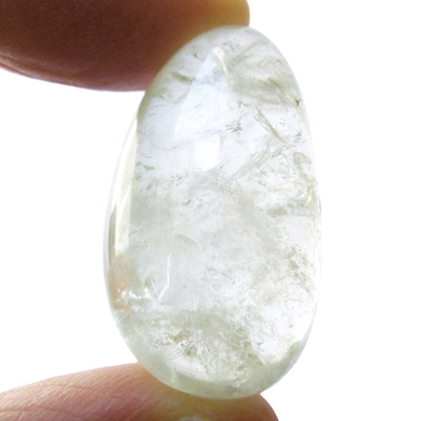 ブラジル・バイーア州産のプラシオライト、タンブルです。発音の関係でプラシオライト又はプラジオライトと表記されます。プラシオライトはアメジストを加熱処理することでグリーンに変化するのでグリーンアメジストとも呼ばれております。通常アメジストは加熱処理を加えると黄色に変化するのですが、ごく稀にグリーンに変化するものをプラシオライト(グリーンアメジスト)と呼んでいます。抜群の透明度にほのかなグリーンが優しく入っています。