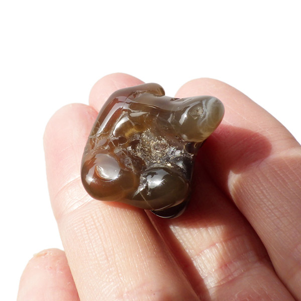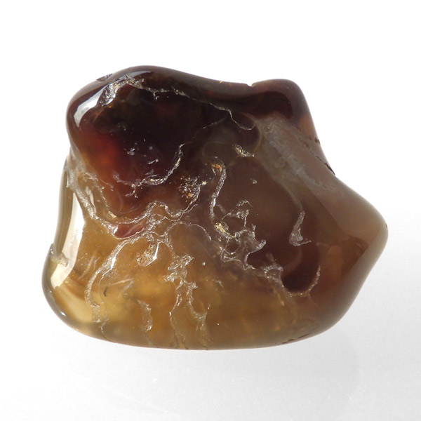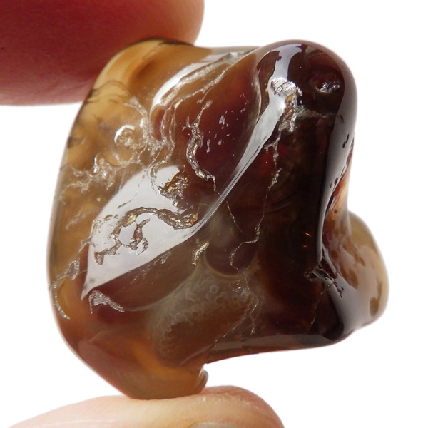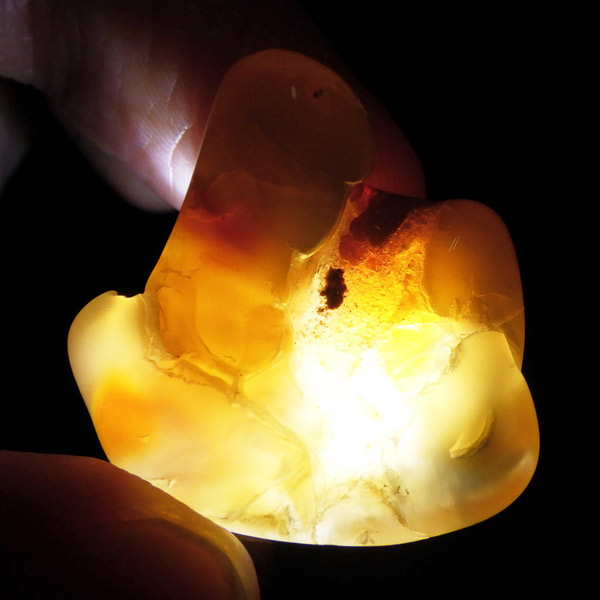 メキシコ産のファイヤーアゲート、タンブルです。ファイヤーアゲートはその名の通り、炎の揺らぎを思わせるオレンジのグラデーションが特徴的な石です。このオレンジはリモナイトによるものといわれております。光に透かすと透明部分とオレンジ部分のコントラストがとても美しいです。