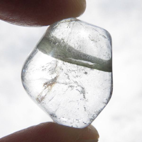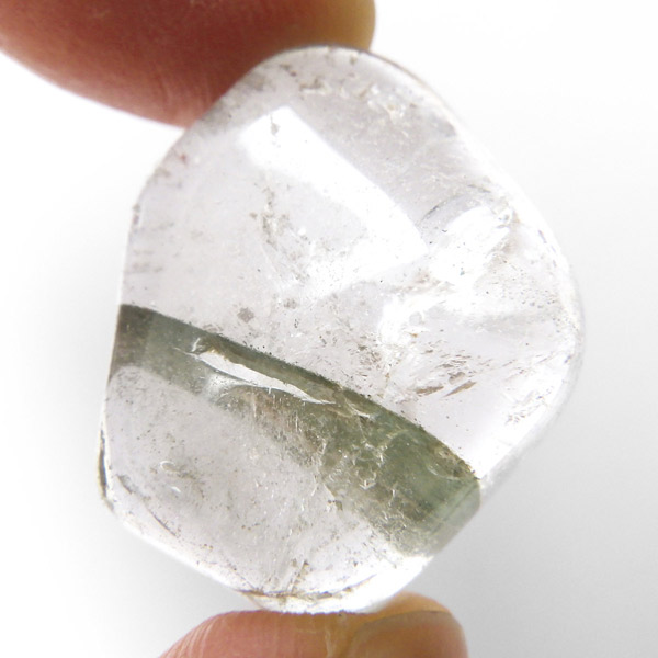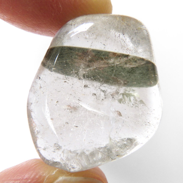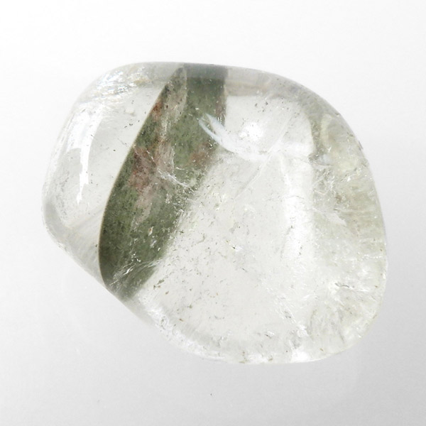 ブラジル産グリーン主体のガーデンクォーツ、タンブルです。ガーデンクォーツは、水晶が形成される過程で、緑や茶色の鉱物や泥岩を巻き込みながら結晶した水晶です。水晶の中に自然の風景が閉じ込められたようにも見えるため、「庭園水晶」「苔入り水晶」とも呼ばれています。 ファントムクォーツは、ガーデンクォーツの一種で、水晶が成長していく過程で、水晶の成長が一時的に停止した際に、その表面に別の鉱物などが付着し、また水晶が再び成長を始めると結晶の中に斜めや三角、山型の模様ができます。