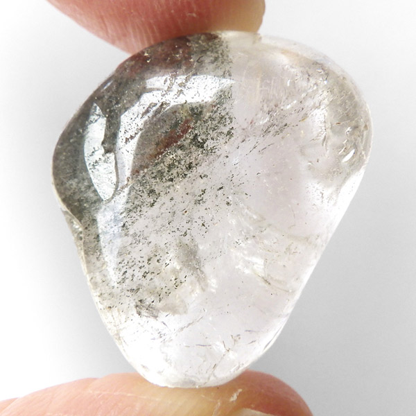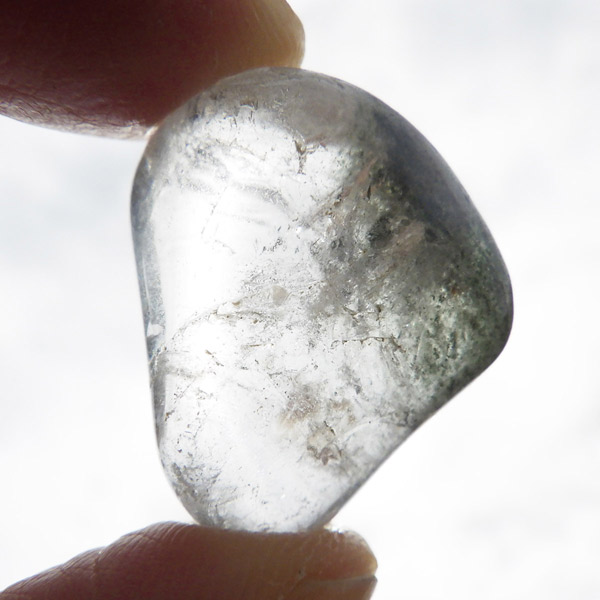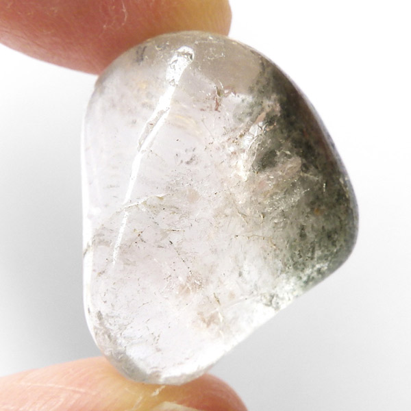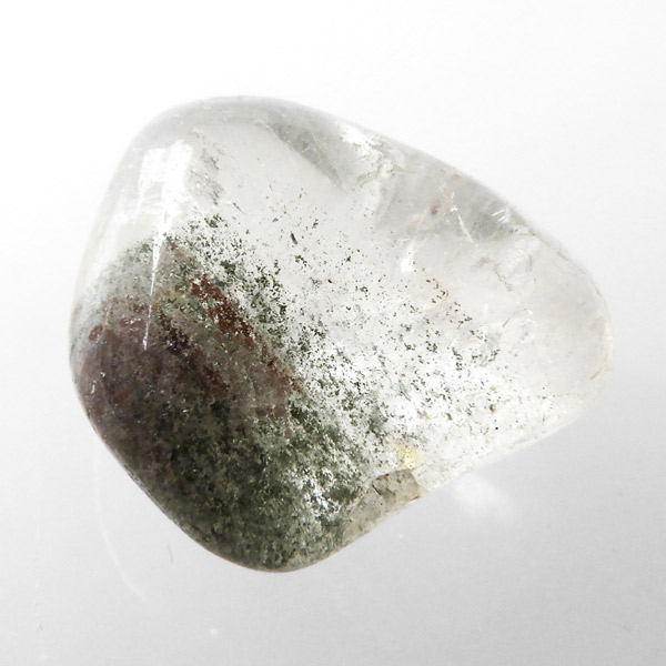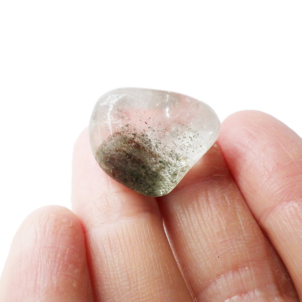 ブラジル産グリーン主体のガーデンクォーツ、タンブルです。ガーデンクォーツは、水晶が形成される過程で、緑や茶色の鉱物や泥岩を巻き込みながら結晶した水晶です。水晶の中に自然の風景が閉じ込められたようにも見えるため、「庭園水晶」「苔入り水晶」とも呼ばれています。 ファントムクォーツは、ガーデンクォーツの一種で、水晶が成長していく過程で、水晶の成長が一時的に停止した際に、その表面に別の鉱物などが付着し、また水晶が再び成長を始めると結晶の中に斜めや三角、山型の模様ができます。
