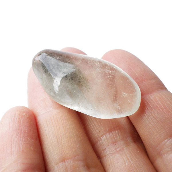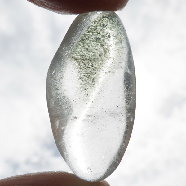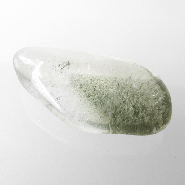ブラジル産グリーン主体のガーデンクォーツ、タンブルです。ガーデンクォーツは、水晶が形成される過程で、緑や茶色の鉱物や泥岩を巻き込みながら結晶した水晶です。水晶の中に自然の風景が閉じ込められたようにも見えるため、「庭園水晶」「苔入り水晶」とも呼ばれています。 ファントムクォーツは、ガーデンクォーツの一種で、水晶が成長していく過程で、水晶の成長が一時的に停止した際に、その表面に別の鉱物などが付着し、また水晶が再び成長を始めると結晶の中に斜めや三角、山型の模様ができます。