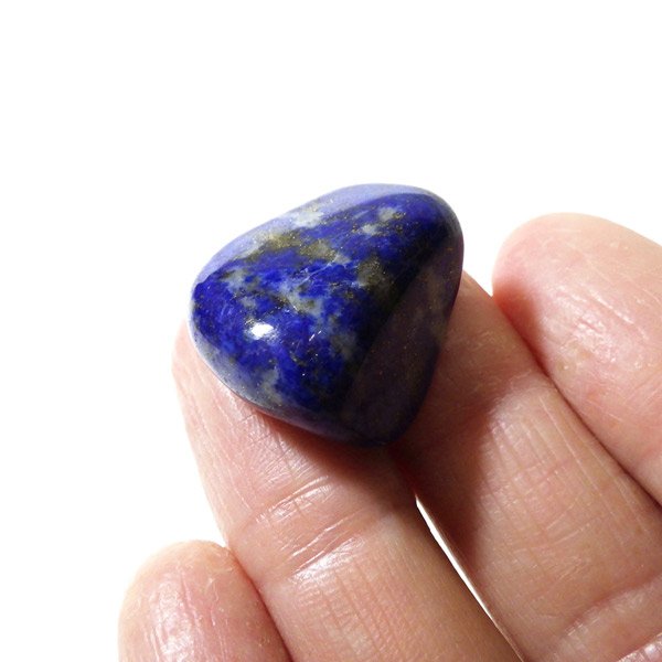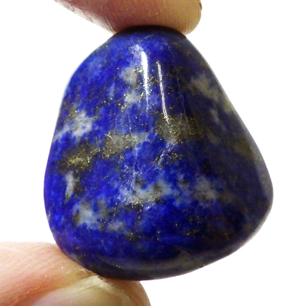 アフガニスタン産のラピスラズリ、タンブルです。 ラピスラズリは、ラズライト・アウィン・ソーダライト・ノーゼライトが集合したものです。特に、ラズライトとノーゼライトを多く含有すると、深く美しい色彩のラピスラズリとなります。全体的に、均一な色彩のものは少なく、黄金色の「パイライト」、白色の「カルサイト」など"が小さな斑点としてみられます。その中でも、トップクラスのグレードのものを集めました。