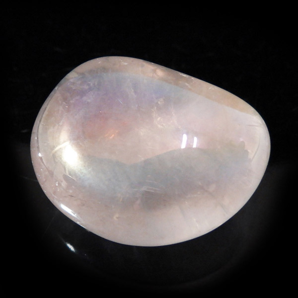 ブラジル産のローズクォーツオーラ、タンブルです。ローズクォーツにオーラ加工を施しています。和名を「蒸着水晶」と付けられており、水晶に金属などを真空中の加熱により飛ばして表面に均一に焼き付ける処理を施しています。そのため、虹のような光沢が表れます。