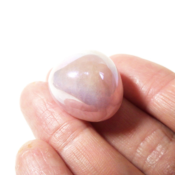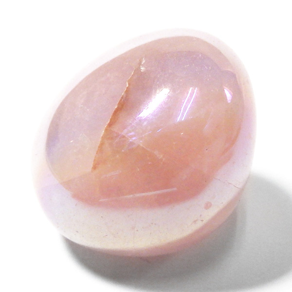 ブラジル産のローズクォーツオーラ、タンブルです。ローズクォーツにオーラ加工を施しています。和名を「蒸着水晶」と付けられており、水晶に金属などを真空中の加熱により飛ばして表面に均一に焼き付ける処理を施しています。そのため、虹のような光沢が表れます。