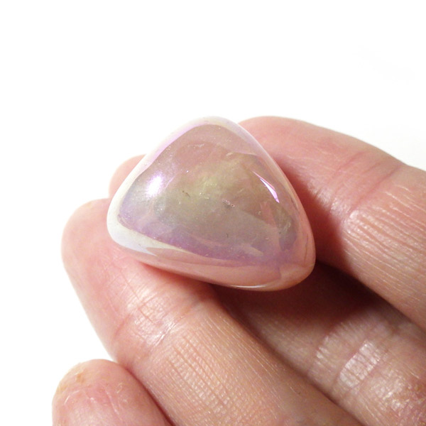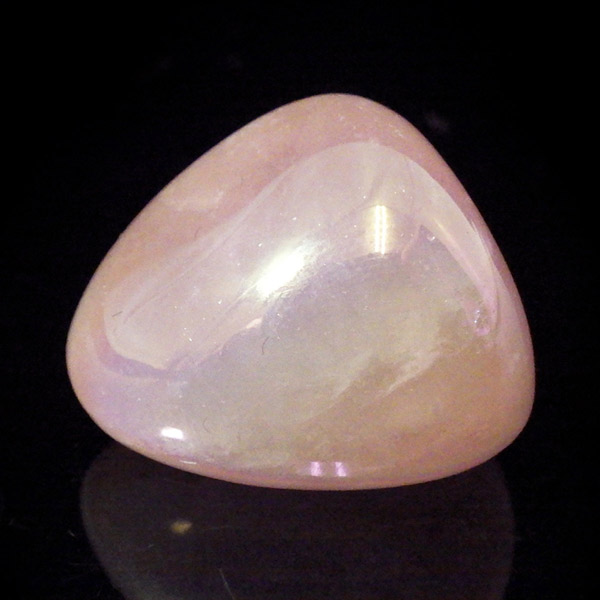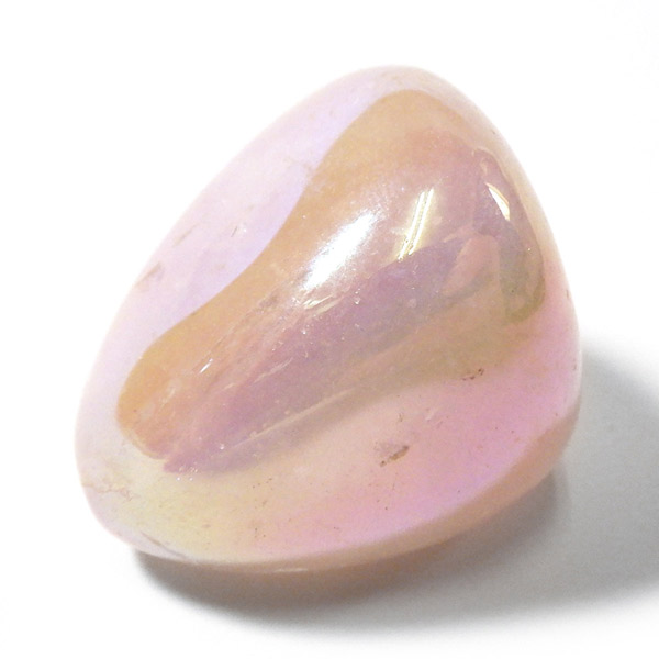 ブラジル産のローズクォーツオーラ、タンブルです。ローズクォーツにオーラ加工を施しています。和名を「蒸着水晶」と付けられており、水晶に金属などを真空中の加熱により飛ばして表面に均一に焼き付ける処理を施しています。そのため、虹のような光沢が表れます。