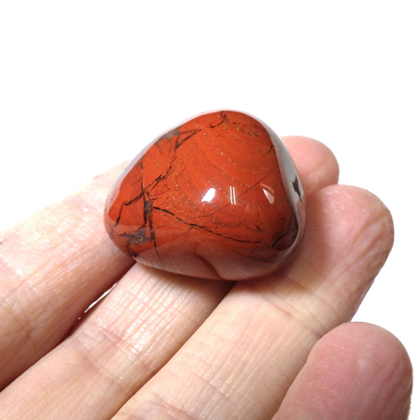 ブラジル産のポピージャスパー、タンブルです。 ジャスパーは、様々な不純物を含んだ石英の総称で、含まれる不純物によって、赤、緑、黄、黒、褐色など、多くの色や模様を持ちます。古くから「聖なる石」と崇められてきた鉱物で、太陽崇拝のインカ帝国では、レッドジャスパーが生命の源の石としてまつりに使用されていたそうです。このポピージャスパーは鮮やかで艶があり、石英によって独特の模様が楽しめます。