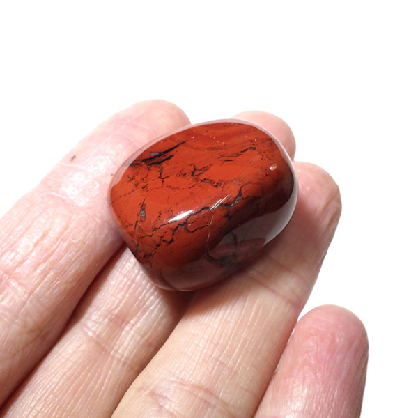 ブラジル産のポピージャスパー、タンブルです。 ジャスパーは、様々な不純物を含んだ石英の総称で、含まれる不純物によって、赤、緑、黄、黒、褐色など、多くの色や模様を持ちます。古くから「聖なる石」と崇められてきた鉱物で、太陽崇拝のインカ帝国では、レッドジャスパーが生命の源の石としてまつりに使用されていたそうです。このポピージャスパーは鮮やかで艶があり、石英によって独特の模様が楽しめます。