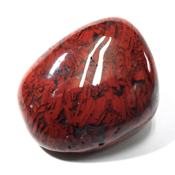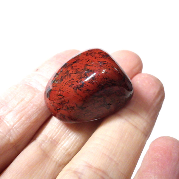 ブラジル産のポピージャスパー、タンブルです。 ジャスパーは、様々な不純物を含んだ石英の総称で、含まれる不純物によって、赤、緑、黄、黒、褐色など、多くの色や模様を持ちます。古くから「聖なる石」と崇められてきた鉱物で、太陽崇拝のインカ帝国では、レッドジャスパーが生命の源の石としてまつりに使用されていたそうです。このポピージャスパーは鮮やかで艶があり、石英によって独特の模様が楽しめます。