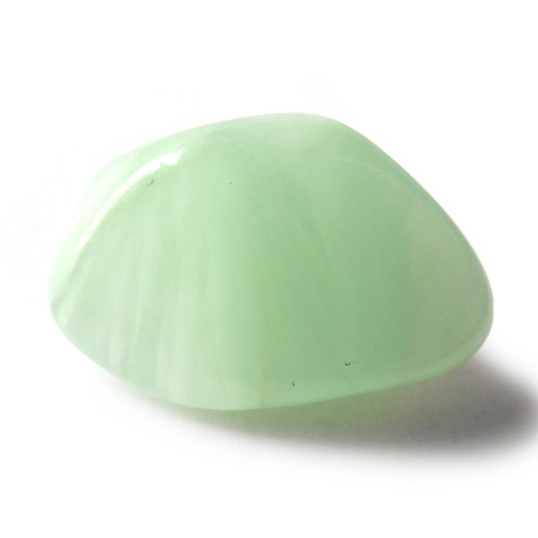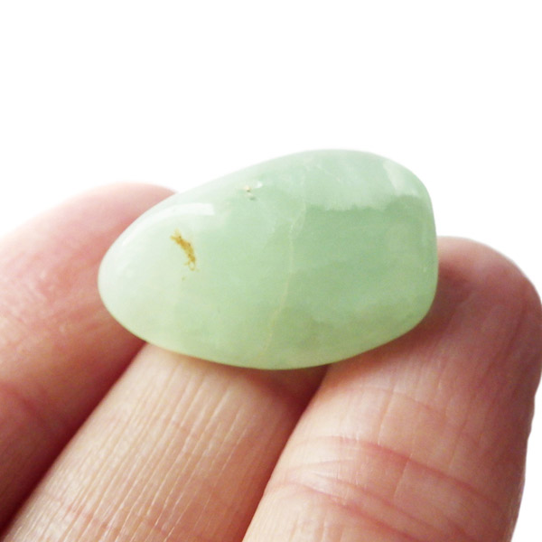 ナミビア産のアップルグリーンプレナイト、タンブルです。プレナイトは、淡い青緑から黄色にかけての色合いの石。1788年に南アフリカで初めてこの石を発見したフォン・プレーン大佐にちなんで名付けられました。葡萄石という和名は産出時に見た目が葡萄のようであったことから名づけられました。今回は黄色味がかったものではなく、発色の良いアップルグリーンのプレナイトをご用意いたしました。綺麗な色合いで心が落ち着きます。