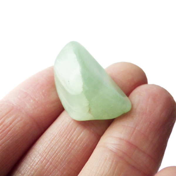 ナミビア産のアップルグリーンプレナイト、タンブルです。プレナイトは、淡い青緑から黄色にかけての色合いの石。1788年に南アフリカで初めてこの石を発見したフォン・プレーン大佐にちなんで名付けられました。葡萄石という和名は産出時に見た目が葡萄のようであったことから名づけられました。今回は黄色味がかったものではなく、発色の良いアップルグリーンのプレナイトをご用意いたしました。綺麗な色合いで心が落ち着きます。