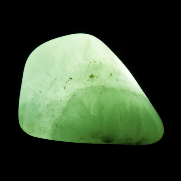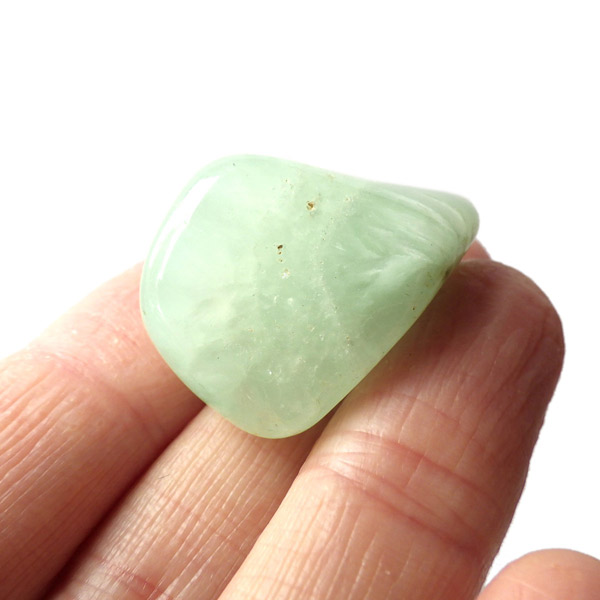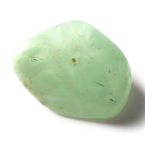 ナミビア産のアップルグリーンプレナイト、タンブルです。プレナイトは、淡い青緑から黄色にかけての色合いの石。1788年に南アフリカで初めてこの石を発見したフォン・プレーン大佐にちなんで名付けられました。葡萄石という和名は産出時に見た目が葡萄のようであったことから名づけられました。今回は黄色味がかったものではなく、発色の良いアップルグリーンのプレナイトをご用意いたしました。綺麗な色合いで心が落ち着きます。