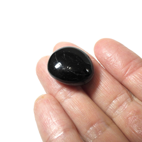 ブラジル産のブラックトルマリン、タンブルです。黒いカラーで透けはありません。非常にカラーバリエーションの多いトルマリングループにおいて、最も産出量が多い黒いトルマリンをショールとも呼びます。