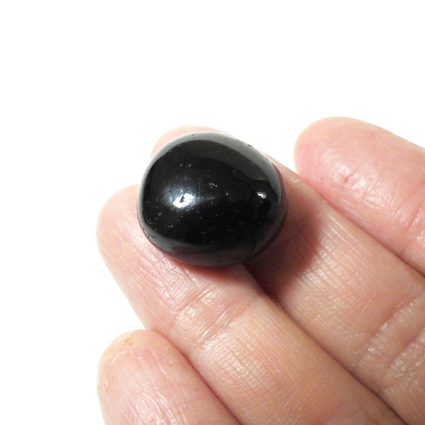 ブラジル産のブラックトルマリン、タンブルです。黒いカラーで透けはありません。非常にカラーバリエーションの多いトルマリングループにおいて、最も産出量が多い黒いトルマリンをショールとも呼びます。