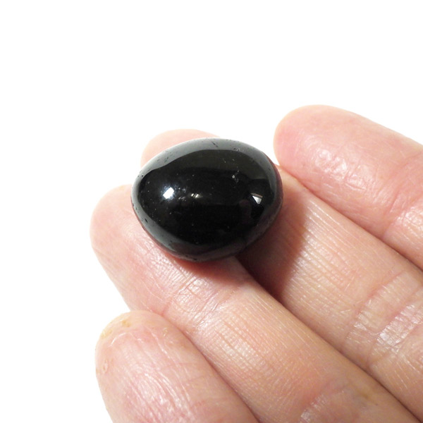 ブラジル産のブラックトルマリン、タンブルです。黒いカラーで透けはありません。非常にカラーバリエーションの多いトルマリングループにおいて、最も産出量が多い黒いトルマリンをショールとも呼びます。