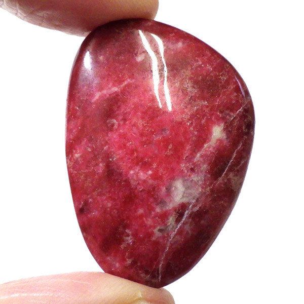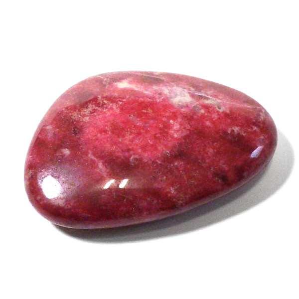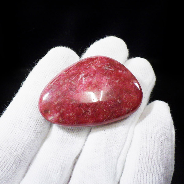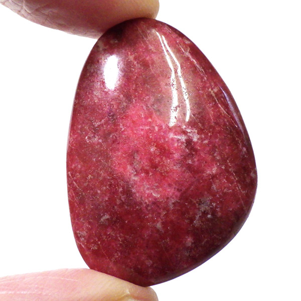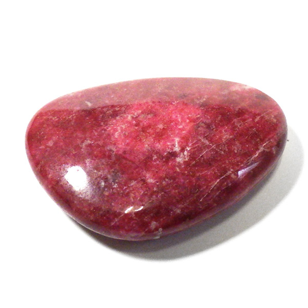 ノルウェー産チューライト、磨きペブルです。赤みの発色の良い高品質なチューライトです。深紅といった色合いがぴったりでしょうか。手のひらで包めるような大きさで平たく磨いております。チューライトは、ノルウェーなど、限られた地域のみで産出される、希少な石です。タンザナイト等も含まれるゾイサイトグループのバリエーションの一つで、その中でもピンク~赤色をしているものをさします。緑色をしているものは「アニョライト」、青色をしているものは「タンダナイト」と分類されます。その赤色の発色は、含まれる鉄とマンガンに起因しています。