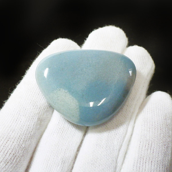 ブラジル産のトロレアイト、磨きペブルです。手のひらで包めるような大きさで平たく磨いております。トロレアイトは非常に珍しいリン酸塩鉱物で淡青緑色から青みがかった塊で見つかり、ラズライト、スコルザライトとの混合物のため、青く色付いています。発見者のスウェーデンのトロール氏にちなんで名付けられました。トロール=妖精という意味からアセンションストーン(碧い妖精の石)とも呼ばれています。日本ではトロール石とも呼ばれています。ブルーの濃淡や、色味がくすみカラーでかわいいです。