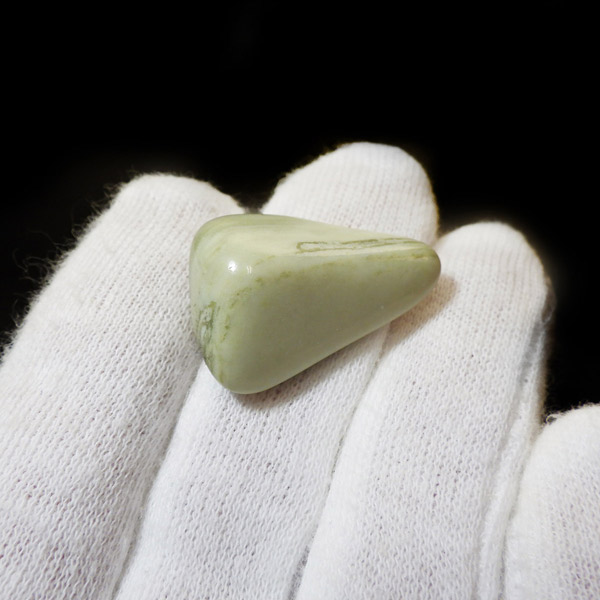 インド産のインフィナイト、タンブルです。インフィナイトはケイ酸マグネシウム鉱物で、クリソタイルとサーペンティンの組み合わせといわれています。通常、黄色、クリーム、緑、などの優しい色味をしており、縞模様が特徴的です。サーペンティンの一種で南アフリカで見つかるものを特別視し、インフィナイトと名づけられました。現在、インフィナイトは南アフリカとインドでしか見られない組み合わせとのことです。インフィナイトストーン、インフィナイトサーペンティンとも呼ばれています。