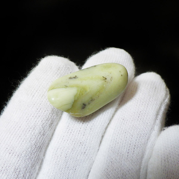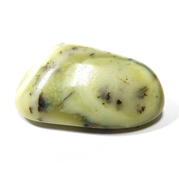 インド産のインフィナイト、タンブルです。インフィナイトはケイ酸マグネシウム鉱物で、クリソタイルとサーペンティンの組み合わせといわれています。通常、黄色、クリーム、緑、などの優しい色味をしており、縞模様が特徴的です。サーペンティンの一種で南アフリカで見つかるものを特別視し、インフィナイトと名づけられました。現在、インフィナイトは南アフリカとインドでしか見られない組み合わせとのことです。インフィナイトストーン、インフィナイトサーペンティンとも呼ばれています。