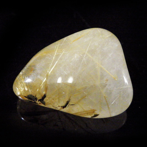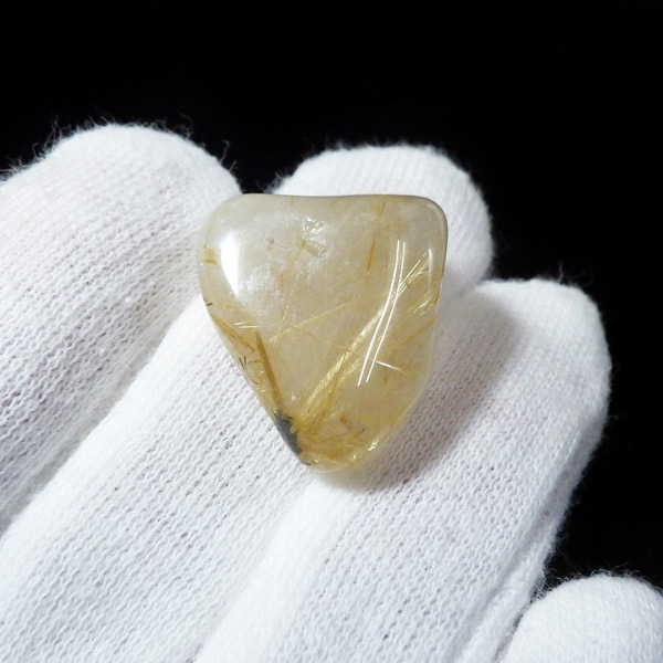 ブラジル産ゴールドルチルクォーツのタンブルです。 水晶の内部に針状のルチルがインクリュージョンされた水晶をルチルクォーツと呼んでいます。金運といえば1番にこの石といわれるほど人気のあるパワーストーンです。比較的水晶に濁りのなく、金色の針がしっかり内包されているものを厳選しております。