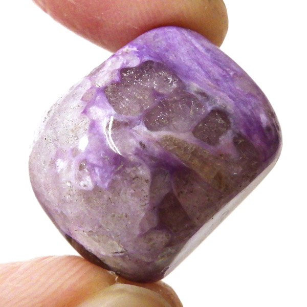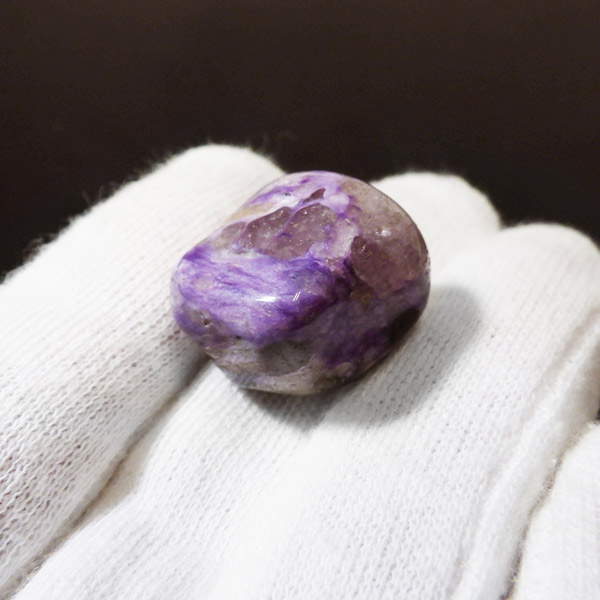 ロシア産のチャロアイト、タンブルです。はっきりとしたマーブル模様が浮き上がったチャロアイト。色・艶・模様とてもきれいで癒されます。チャロアイトはラリマー、スギライトと共に3大ヒーリングストーンの1つとされています。混ざりあった模様が面白く明るいパープルで高品質なチャロアイトです。