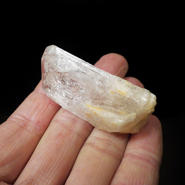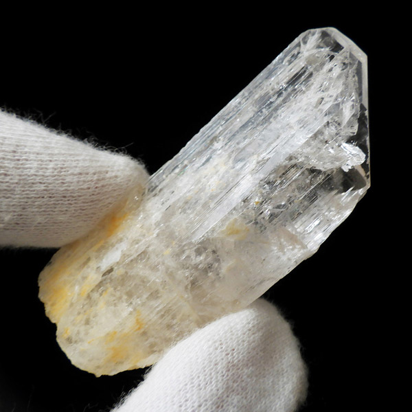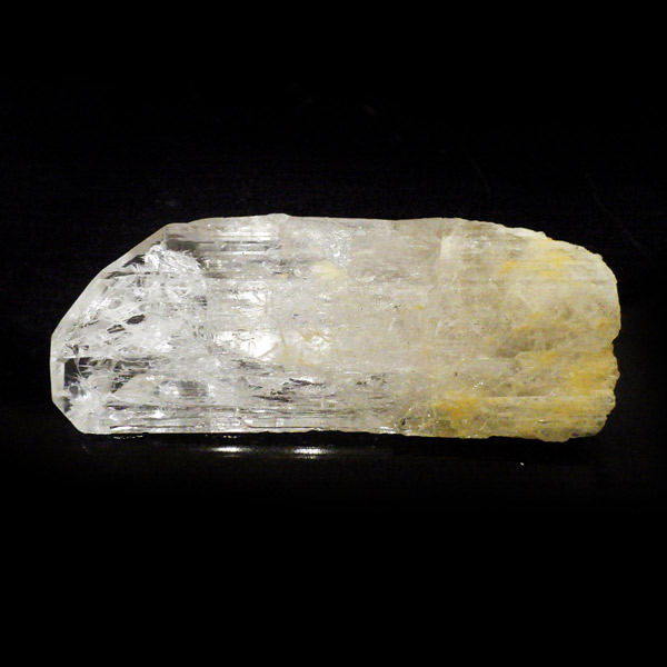メキシコ産、ダンビュライトの原石です。 ダンビュライトはダイヤモンドの代用品として使われることもある石で、結晶の形はトパーズそっくりです。縦に伸びる表面の条線がくっきり見られ、透明度と輝きは美しいの一言。程よい大きさの結晶で見ごたえのある高品質な一点です。