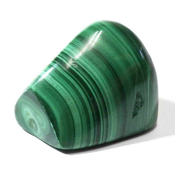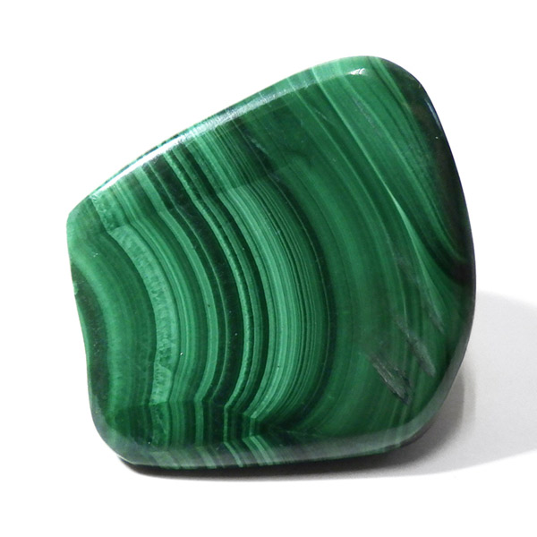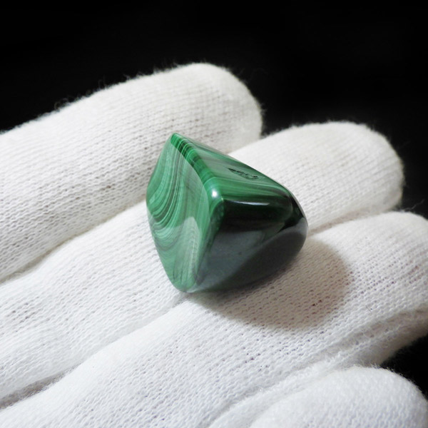 コンゴ産のマラカイト、タンブルです。濃いグリーンカラーに独特の模様を持つマラカイト。 「マラカイトグリーン」という色名になっているほど、特徴的で美しい緑色です。 マラカイトの産地はアメリカ・ロシア・コンゴ・ザンビアなどですが、中でもコンゴ産のマラカイトは非常に美しいものが採れるため、コレクターからも支持されています。