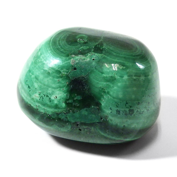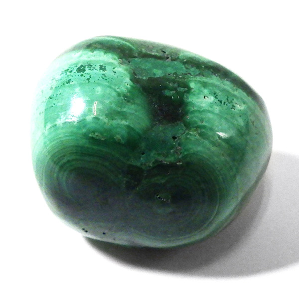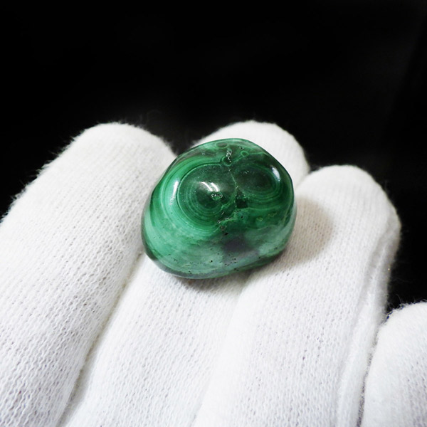 コンゴ産のマラカイト、タンブルです。濃いグリーンカラーに独特の模様を持つマラカイト。 「マラカイトグリーン」という色名になっているほど、特徴的で美しい緑色です。 マラカイトの産地はアメリカ・ロシア・コンゴ・ザンビアなどですが、中でもコンゴ産のマラカイトは非常に美しいものが採れるため、コレクターからも支持されています。