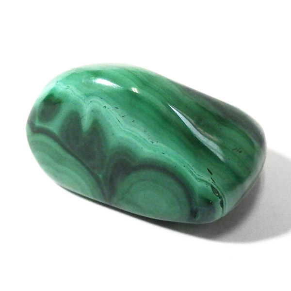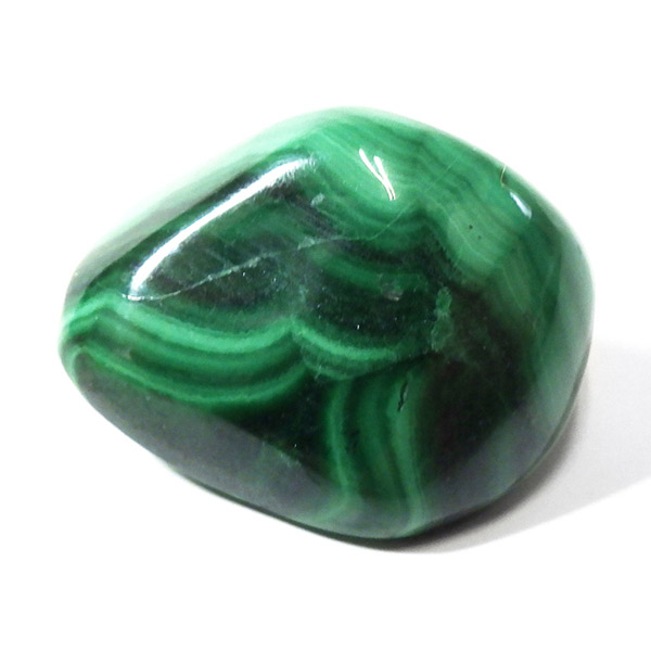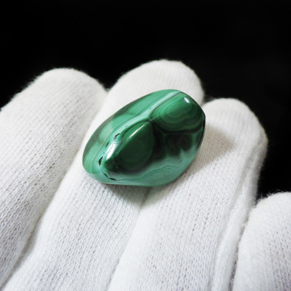 コンゴ産のマラカイト、タンブルです。濃いグリーンカラーに独特の模様を持つマラカイト。 「マラカイトグリーン」という色名になっているほど、特徴的で美しい緑色です。 マラカイトの産地はアメリカ・ロシア・コンゴ・ザンビアなどですが、中でもコンゴ産のマラカイトは非常に美しいものが採れるため、コレクターからも支持されています。