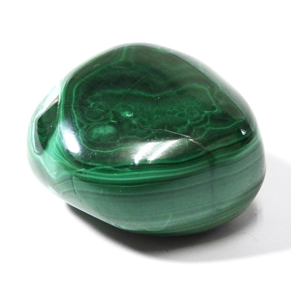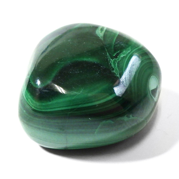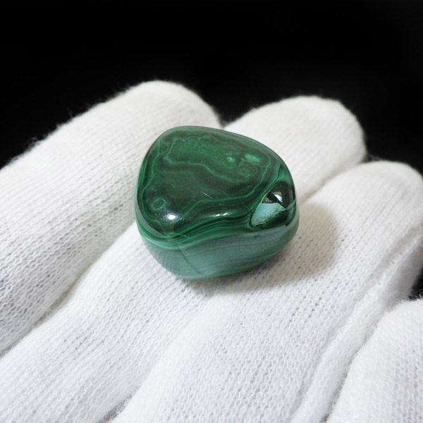 コンゴ産のマラカイト、タンブルです。濃いグリーンカラーに独特の模様を持つマラカイト。 「マラカイトグリーン」という色名になっているほど、特徴的で美しい緑色です。 マラカイトの産地はアメリカ・ロシア・コンゴ・ザンビアなどですが、中でもコンゴ産のマラカイトは非常に美しいものが採れるため、コレクターからも支持されています。