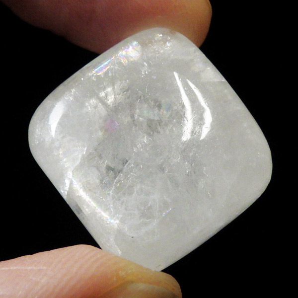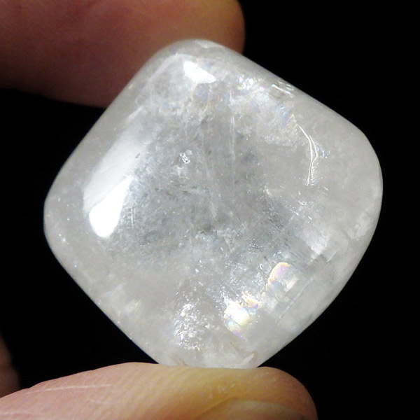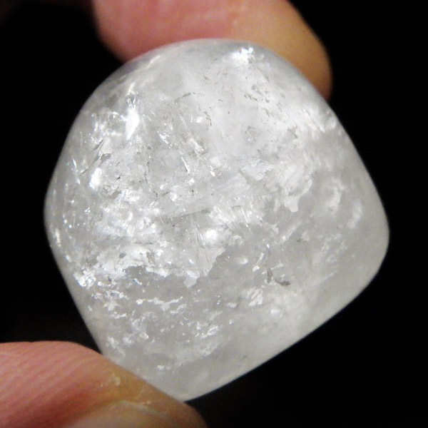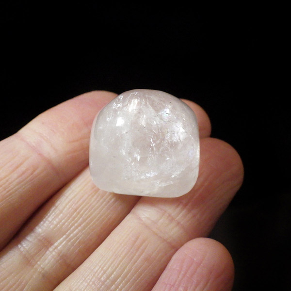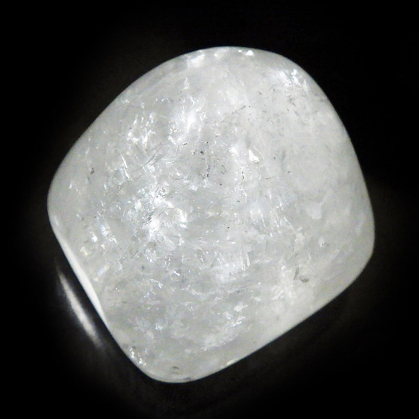 インド、プネー産のアポフィライト、タンブルです。 アポフィライトは、劈開性を持つため魚眼石といわれるように水晶とは違うギラっとした神々しい輝きを魅せてくれます。透明度が非常に高くキラキラ輝き神秘的でとてもきれいです。