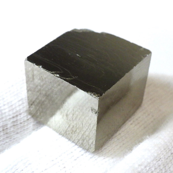 スペインの鉱山から採掘された、最高品質のパイライトキューブ原石です。パイライトは、火山活動の活発な場所で生成される、硫黄と鉄で構成された鉱物の一種です。和名は黄鉄鉱。表面は鉄を含んでいるため鏡のような金属光沢を示します。このパイライトキューブは原石の状態で完全な立方体結晶で、晶癖が味わい深く大変魅力的です。