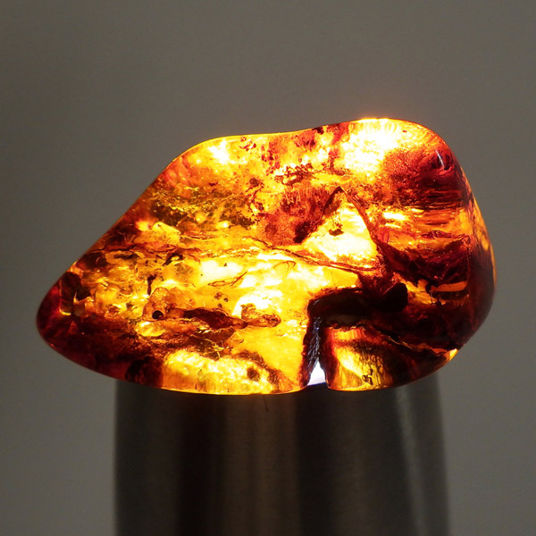バルト海産のアンバー(琥珀)、タンブルです。 松柏類の樹脂が3000万年以上の時を経て化石化したもので、バルト海沿岸地方で多く産出し、紀元前2000年頃、ヨーロッパではすでに「アンバールート」という交易ルートがあったほど人気があったようです。 アンバーという名前は、古代アラビア語の「アンバール(海に漂うもの)」が由来です。樹脂を含む樹木が地殻変動などで海底に沈み、化石へと熟成され海岸に流れ着いたからで、「シー・アンバー」と呼ばれます。色が綺麗なことはもちろん光を通しても綺麗で美しいです。