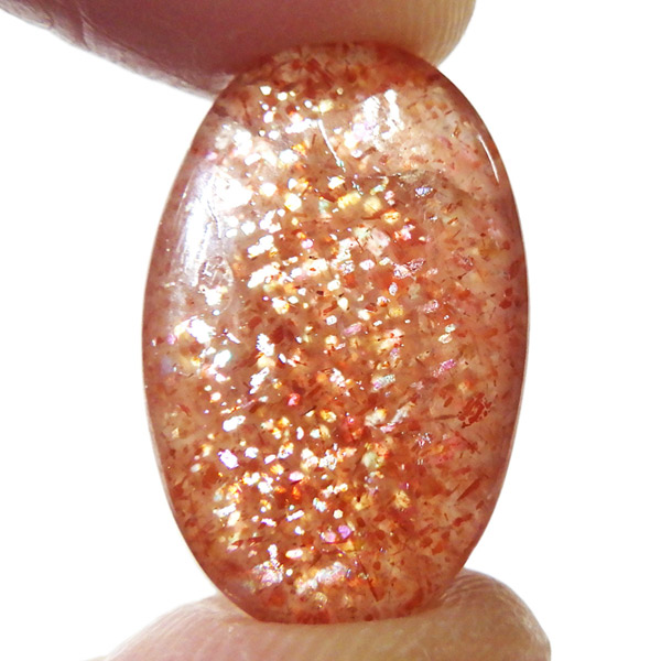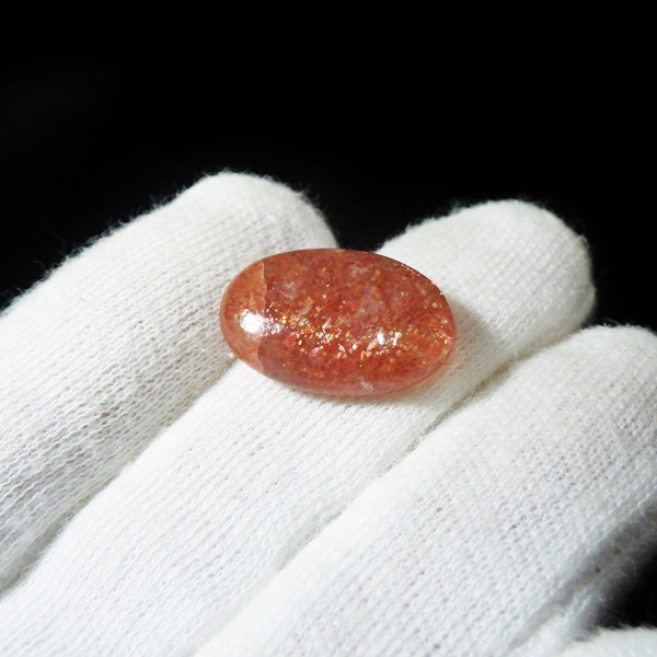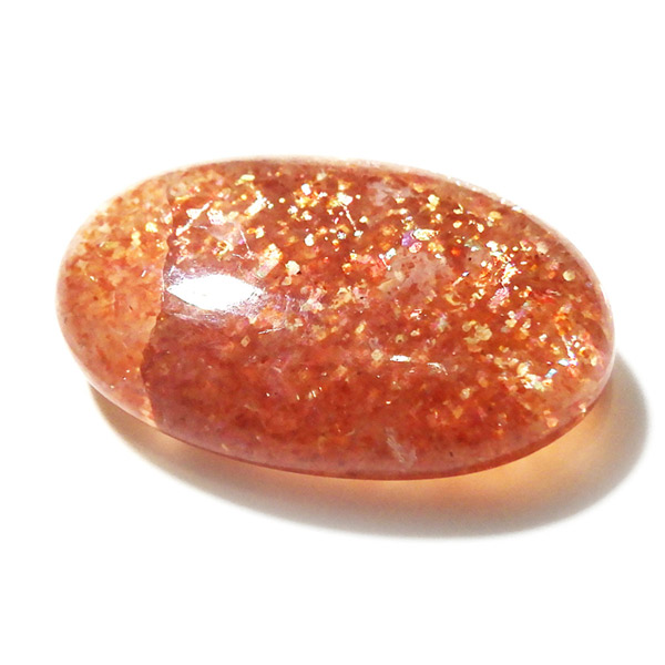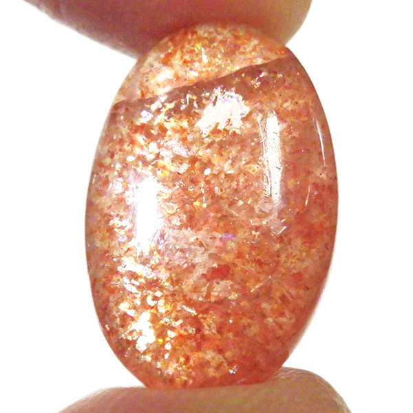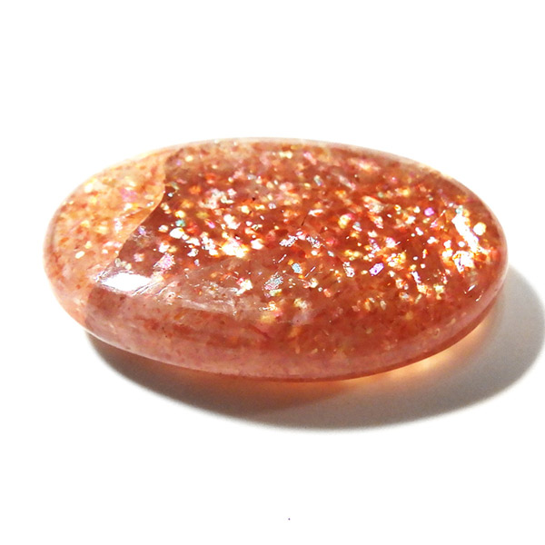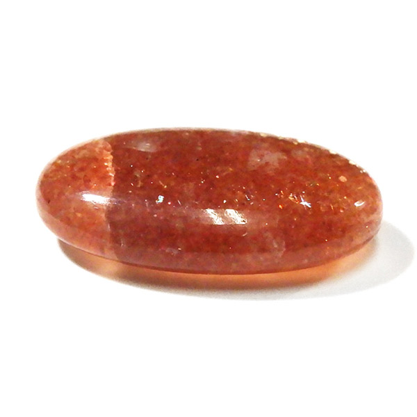 インド産のサンストーン、タンブルです。 サンストーンという名前は鉱物的な性質から名づけられ たものではなく、ムーンストーンの静かな光と対照的に思えるキラキラした光を持つことから名づけられた、宝石としての名称です。まさに太陽のようなキラキラした石です。