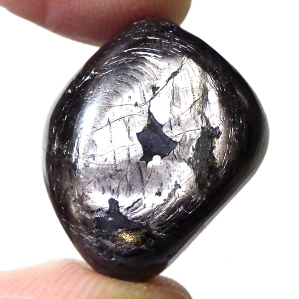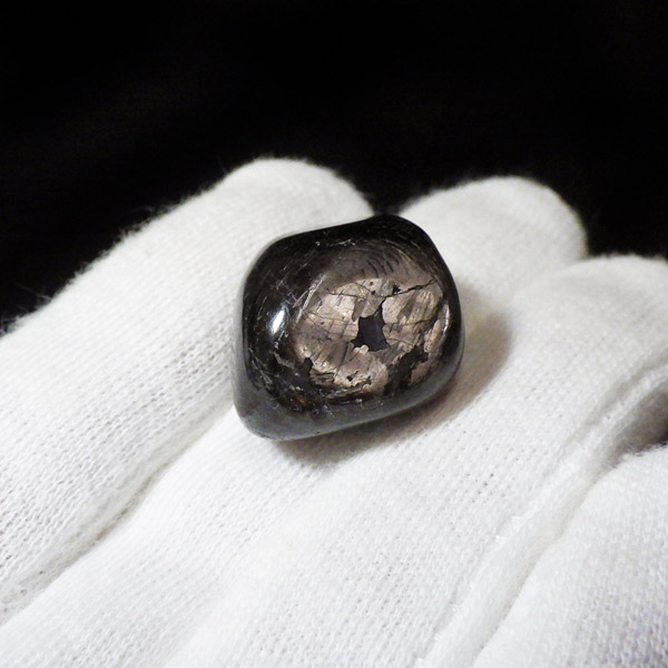 カナダ産のハイパーシーン、タンブルです。和名は紫蘇輝石。ハイパーシーンは、シックでメタリックな光沢と落ち着いた黒褐色が特徴の美しい天然石です。光の角度によって輝きを放つシラー効果が美しく魅力的です。