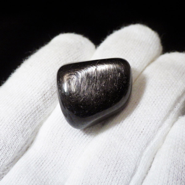 カナダ産のハイパーシーン、タンブルです。和名は紫蘇輝石。ハイパーシーンは、シックでメタリックな光沢と落ち着いた黒褐色が特徴の美しい天然石です。光の角度によって輝きを放つシラー効果が美しく魅力的です。