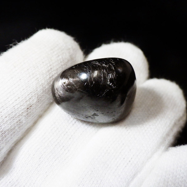 カナダ産のハイパーシーン、タンブルです。和名は紫蘇輝石。ハイパーシーンは、シックでメタリックな光沢と落ち着いた黒褐色が特徴の美しい天然石です。光の角度によって輝きを放つシラー効果が美しく魅力的です。