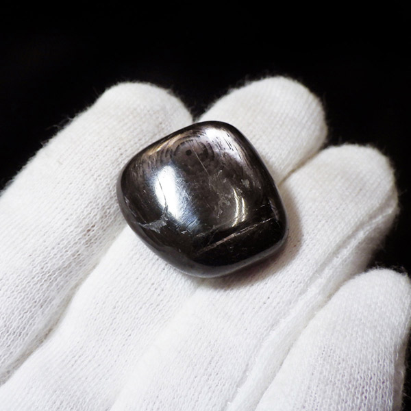 カナダ産のハイパーシーン、タンブルです。和名は紫蘇輝石。ハイパーシーンは、シックでメタリックな光沢と落ち着いた黒褐色が特徴の美しい天然石です。光の角度によって輝きを放つシラー効果が美しく魅力的です。