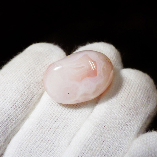 ボツワナ産のアプリコットアゲート、タンブルです。アプリコットアゲートは、優しいアプリコットカラーが特徴の瑪瑙(アゲート)の種類です。アプリコット、いわゆる杏カラーのアゲートです。天然石のカラーニックネームによく果物などが使われることが多くあります。温かみのあるオレンジやピンクのトーンと縞模様が、穏やかで安心感のあるエネルギーをもたらし、心を和ませてくれます。