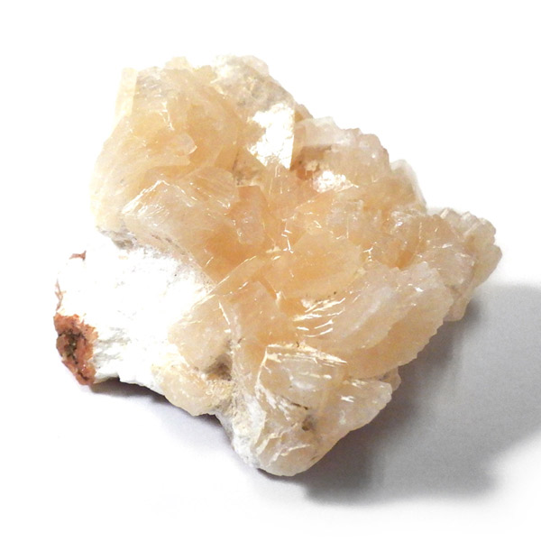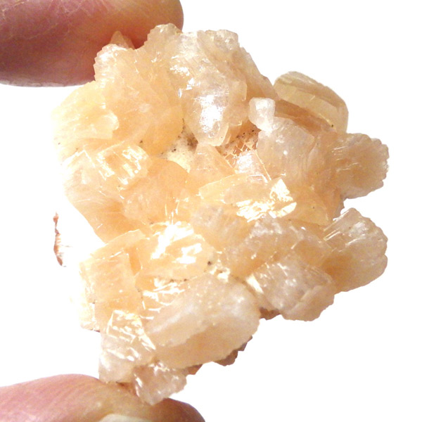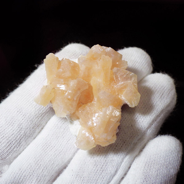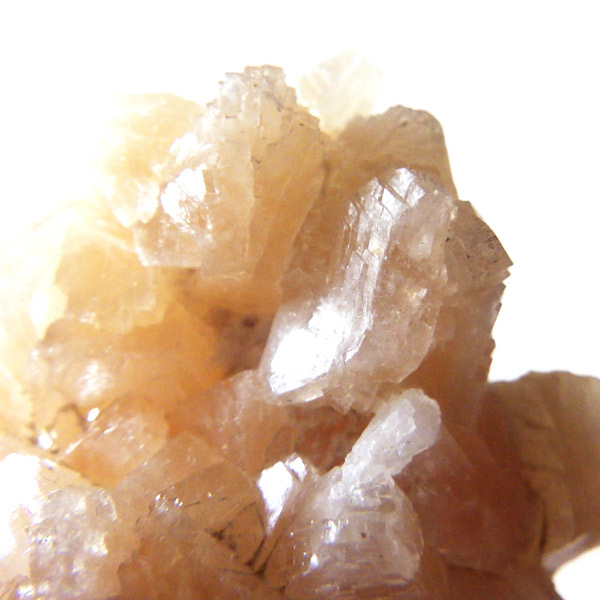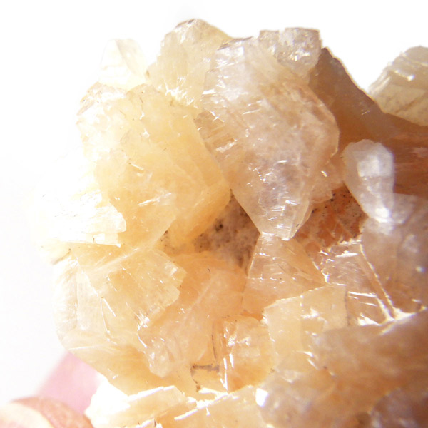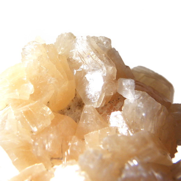 インド産のステラライト原石です。ステラライトは和名でステラ沸石といい、ゼオライト(沸石)グループに属する鉱物です。ドイツの探検家で動物学者のステラー氏が発見し、その名を冠にした希少鉱物です。色は無色からオレンジ。主に板状結晶をした標本でスティルバイトとよく似ているため混同されてきた歴史があります。表面は鏡のようにキラキラと光沢があり、とてもきれいです。