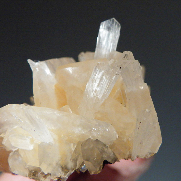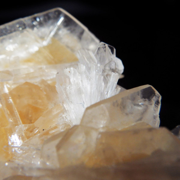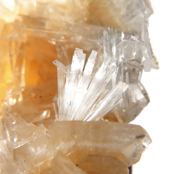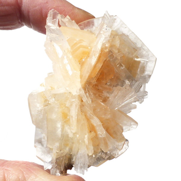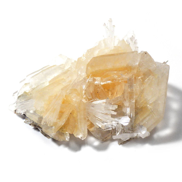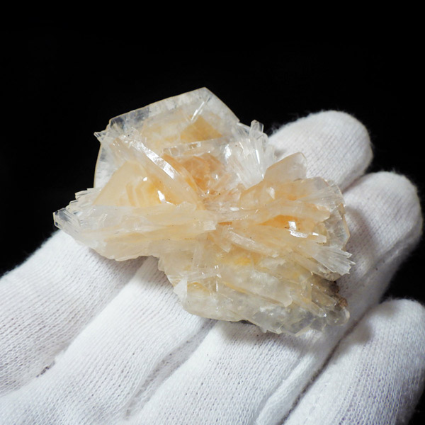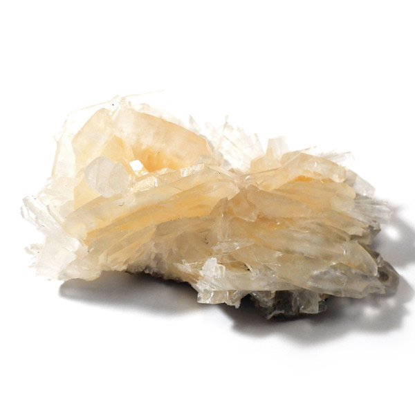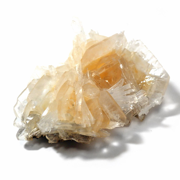 インド産のステラライト原石です。ステラライトは和名でステラ沸石といい、ゼオライト(沸石)グループに属する鉱物です。ドイツの探検家で動物学者のステラー氏が発見し、その名を冠にした希少鉱物です。色は無色からオレンジ。主に板状結晶をした標本でスティルバイトとよく似ているため混同されてきた歴史があります。表面は鏡のようにキラキラと光沢があり、とてもきれいです。